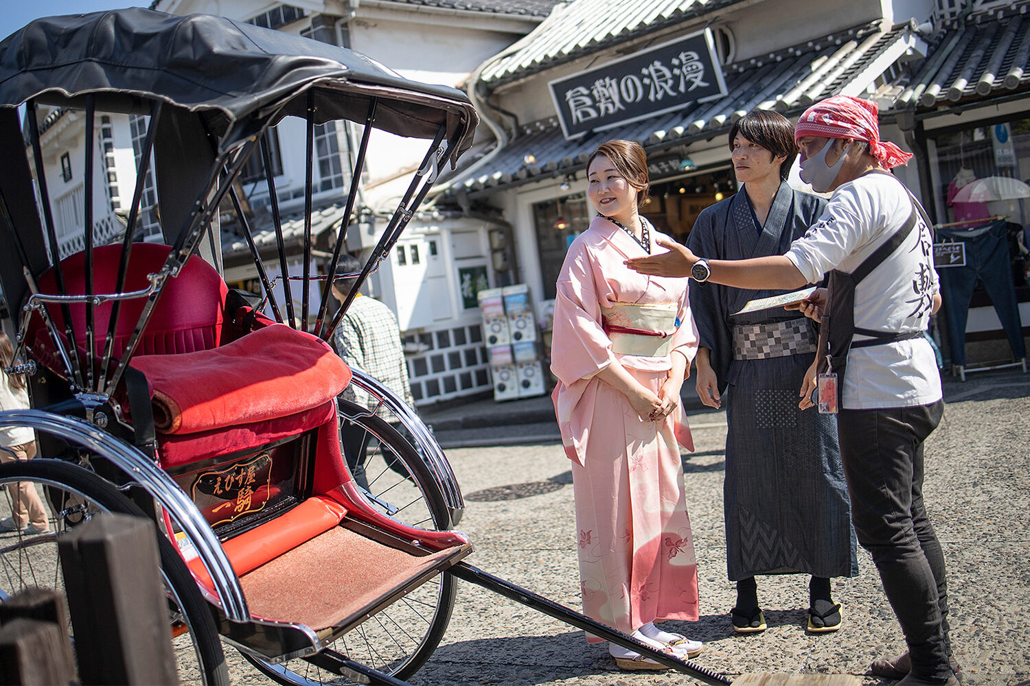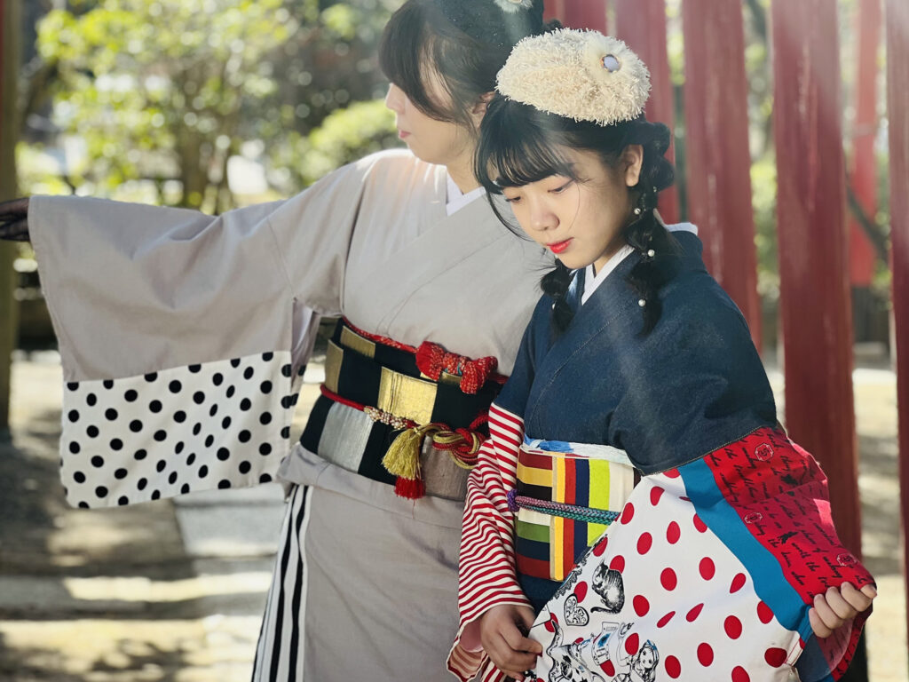アンティーク着物や正絹(シルク)の本格的な着物を扱う、美観地区入口近くに位置する着物レンタル店です。ジャガード織りのデニム着物、銀箔や刺繍が施された高級感のあるデニム着物、レトロでアンティークな着物など、上質な着物を中心に取り揃えています。本格着物を手ぶらで気軽に着られるのが特徴で、帯や小物も幅広い種類を用意しています。翌日返却オプションもあり、時間を気にせずゆっくり着物を楽しめます。デニム着物やアンティーク着物の販売も行っており、レンタルで気に入った着物をその場で購入することも可能です。